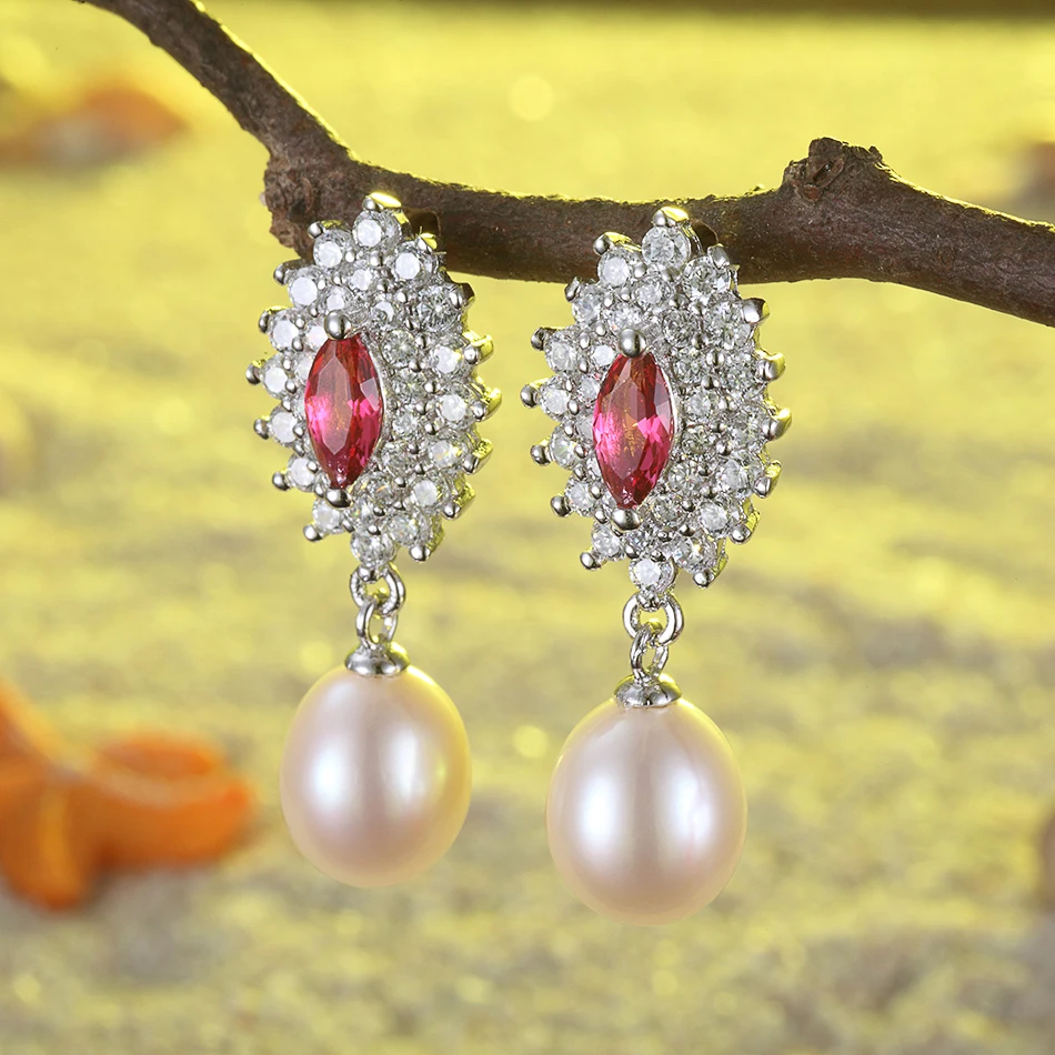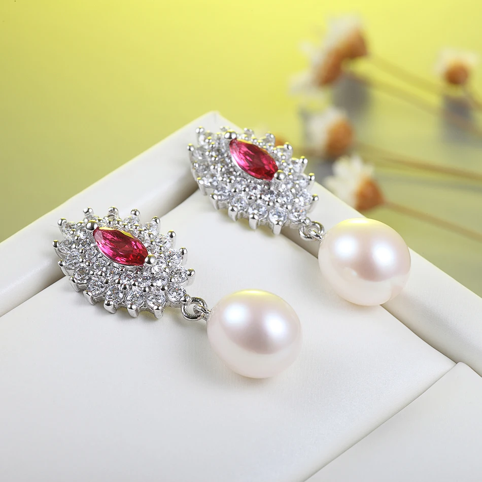 FEIGE Wedding Jewelry Luxury Pearl Stud Earrings 8-9MM White Pearl Earring Fashion Jewelry Brincos