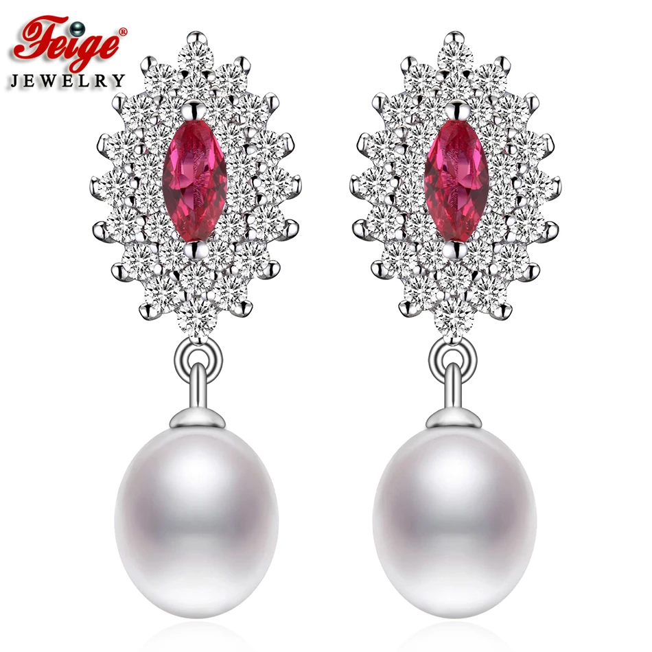 Best FEIGE Wedding Jewelry Luxury Pearl Stud Earrings 8-9MM White Pearl Earring Fashion Jewelry Brincos