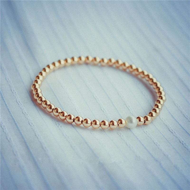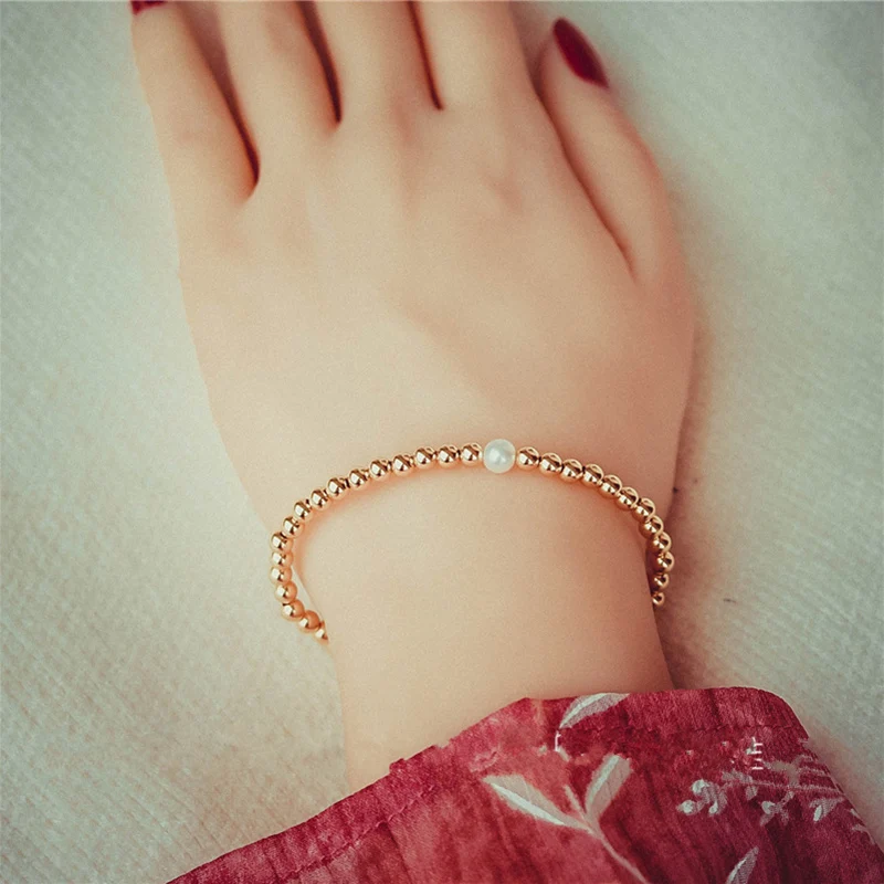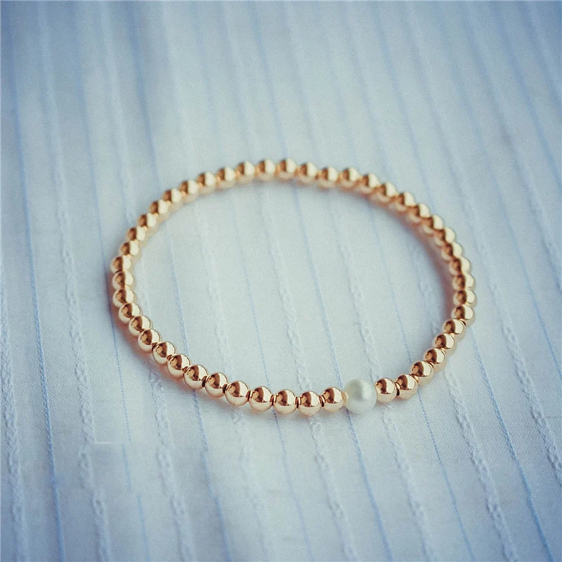 Best Handmade Personalized 3mm Gold Beads Bracelets Elegant Customize Gold Wrap Fillde Bangles Charm Vin