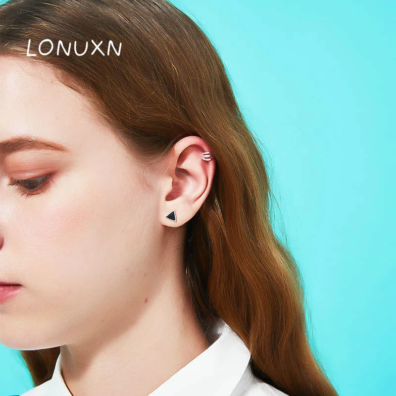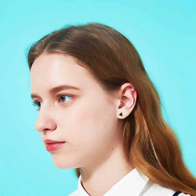 BEST QUALITY high quality Korean version Women's fashion Simple Wild 925 silver Rotate black triangle earring Gi