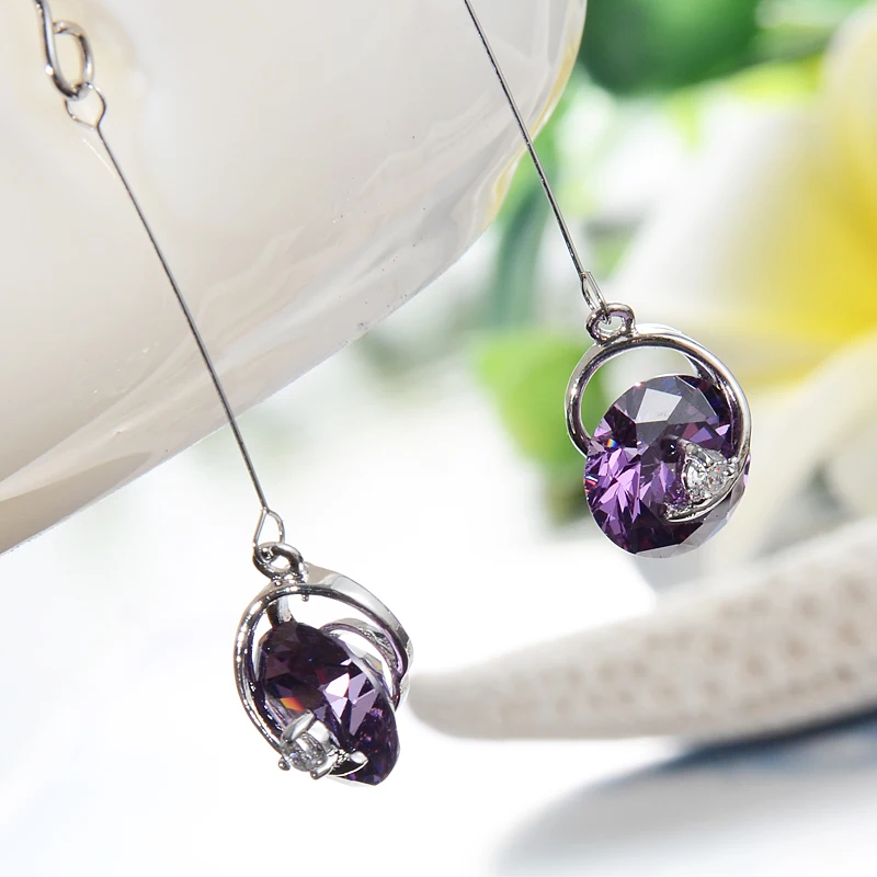 5cm Korea 925 Sterling Silver Earrings long purple crystal CZ earrings jewelry fashion retro Bohemi