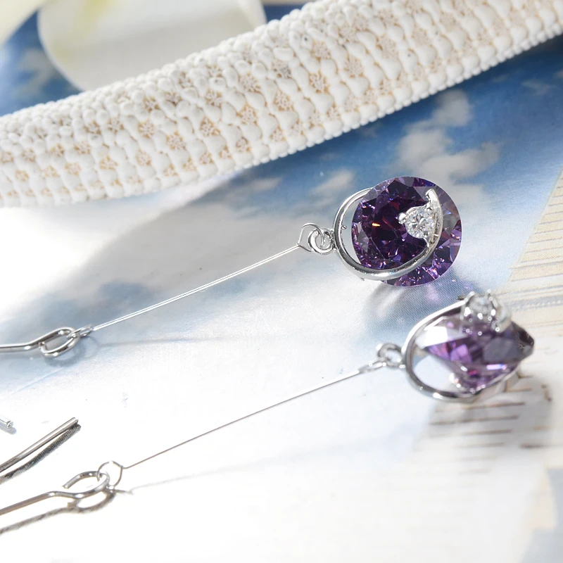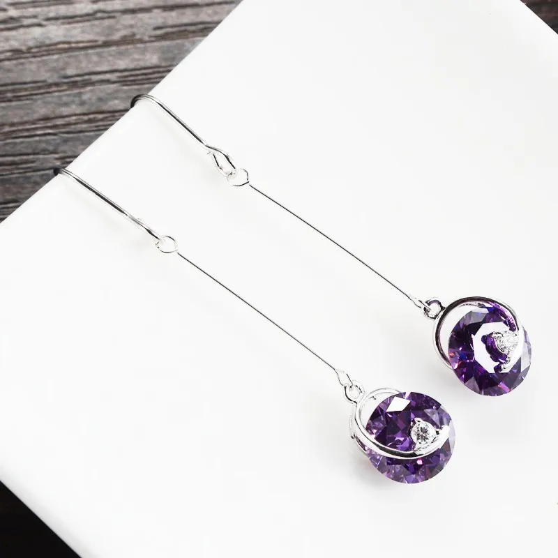 HIGH QUALITY 5cm Korea 925 Sterling Silver Earrings long purple crystal CZ earrings jewelry fashion retro Bohemi