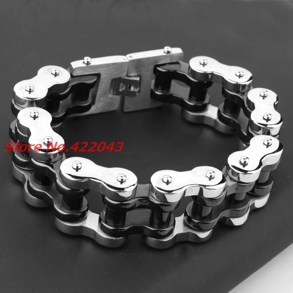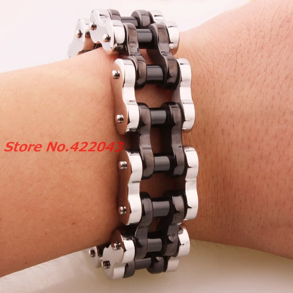 New Arrival 22mm Huge Stainless Steel Silver Black Mens Biker Bicycle Motorcycle Chain Males Bracel