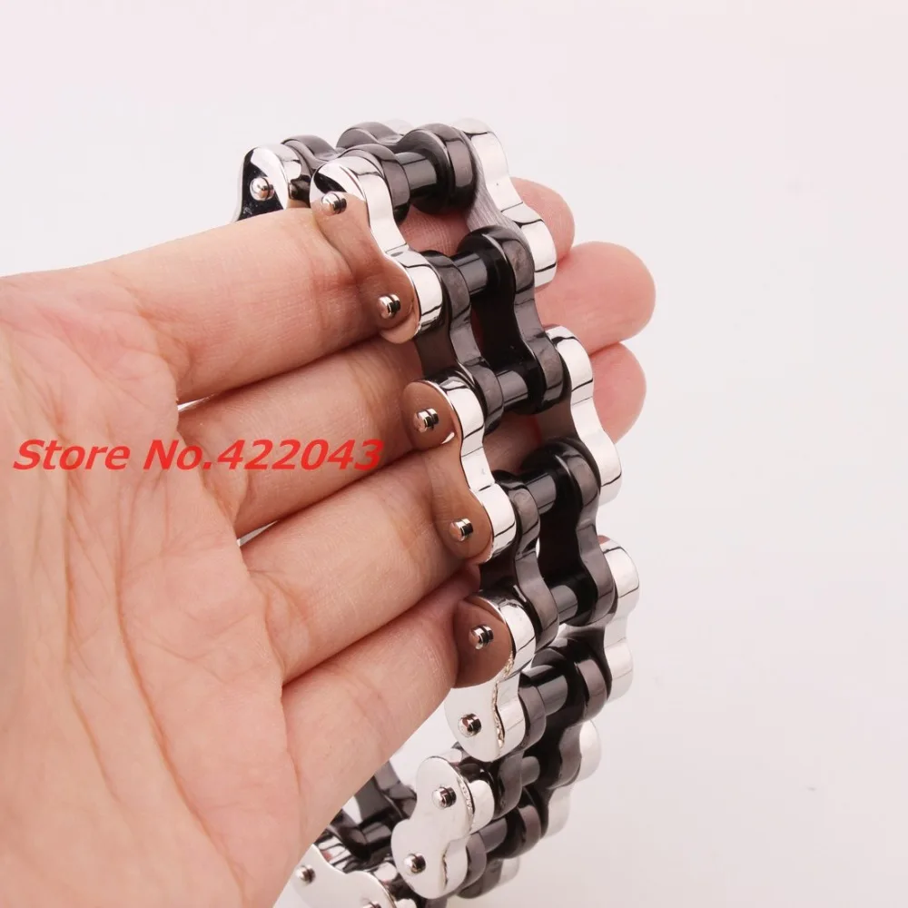HIGH QUALITY New Arrival 22mm Huge Stainless Steel Silver Black Mens Biker Bicycle Motorcycle Chain Males Bracel