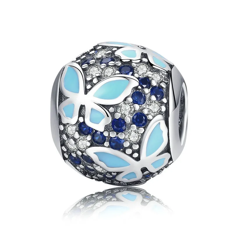 HOT Sale New Arrival 925 Sterling Silver Butterfly Dream Blue Enamel Clear CZ Charms Beads fit Bracelets Nec