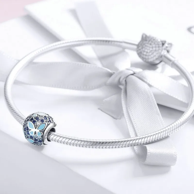 Best New Arrival 925 Sterling Silver Butterfly Dream Blue Enamel Clear CZ Charms Beads fit Bracelets Nec