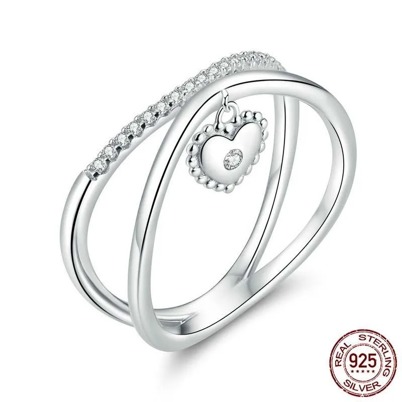 Authentic 925 Sterling Silver Cross Heart Finger Rings for Women Wedding Engagement Statement Luxur